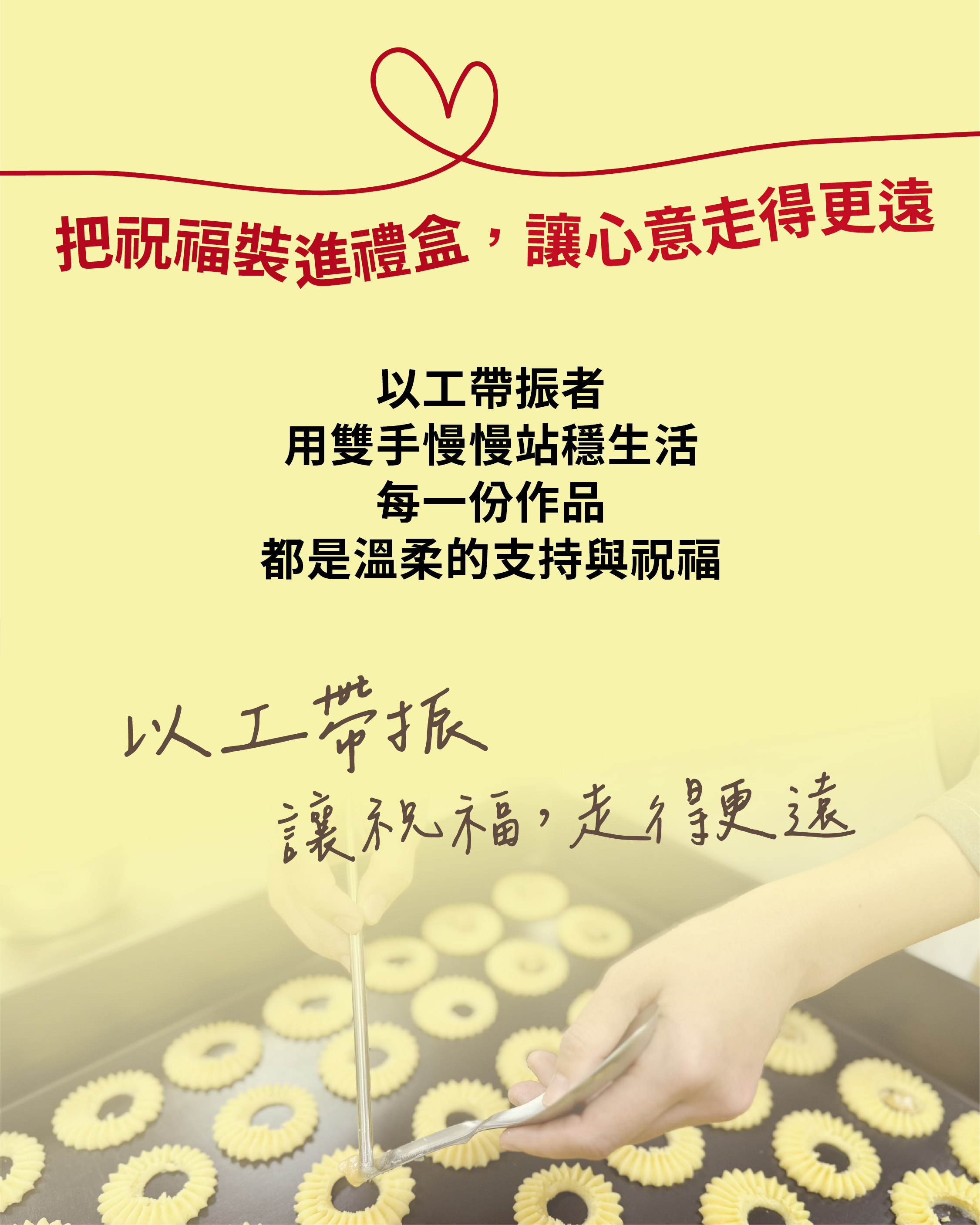 在「以工帶振」團隊中學習與工作,因為可以彈性工時上班,阿華得以兼顧照顧孩子的重責;不僅能學習實用技能,也能賺取穩定的補充收入。「以工帶振」,為她指引了一條重新看見希望的方向。