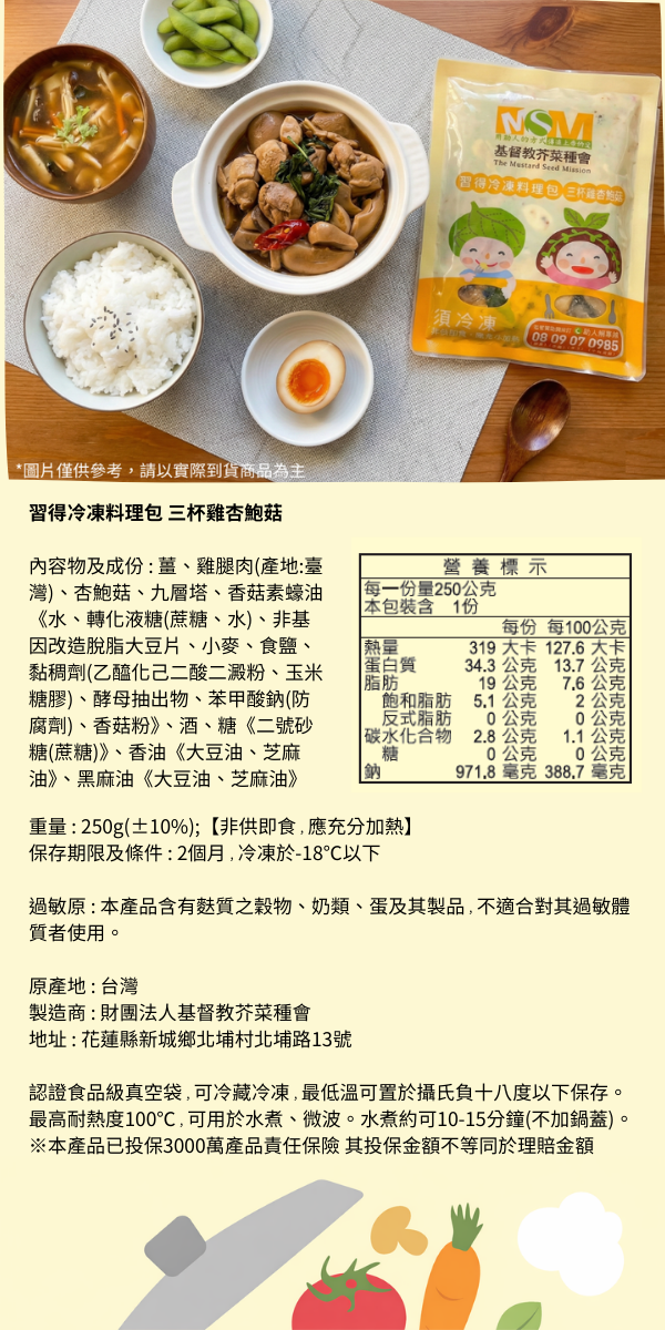 【愛心認購】習得冷凍料理包 3包 (認購者將不會收到商品)