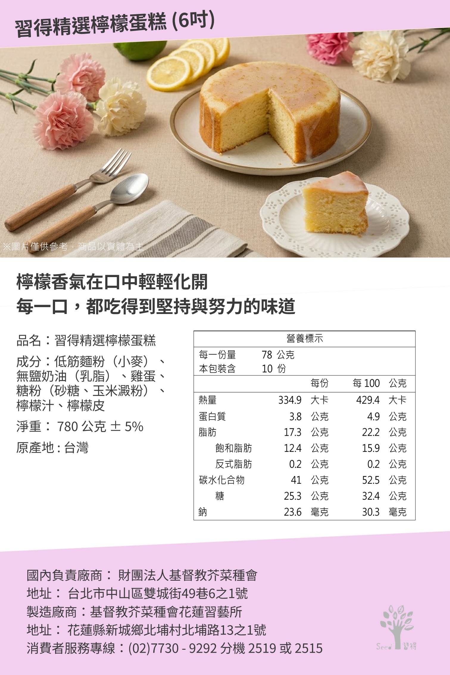 【母親節預購】習得精選檸檬蛋糕 (4/20開始出貨)